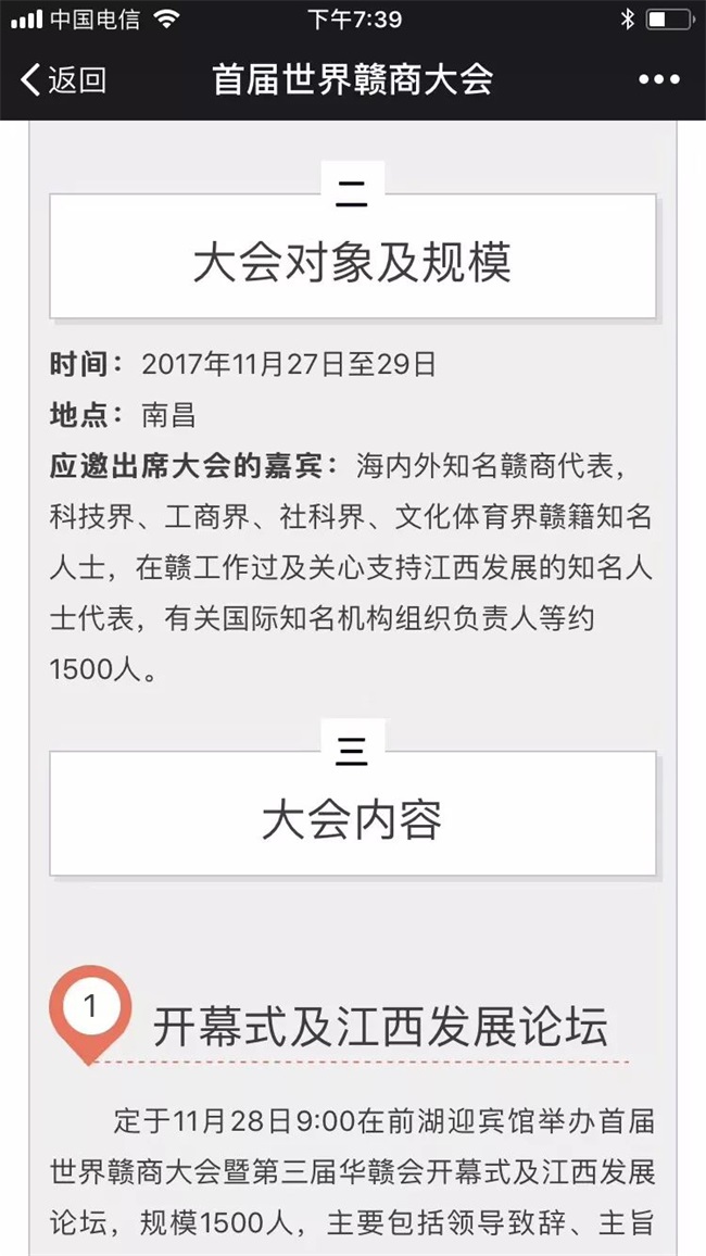 應邀出席大會的嘉賓為:海內外知名贛商代表,科技界、工商界、社科界、文化體育界贛籍知名人士,在贛工作過及關心支持江西發展的知名人士代表,有關國際知名機構組織負責人等總共約1500人。(注:江西省總人口為4563萬人)