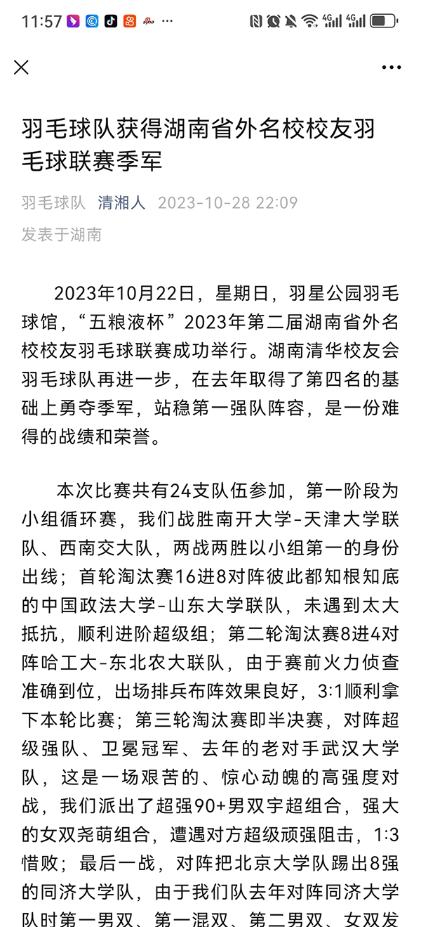 祝賀羊奶粉領軍品牌【歐能達】贊助的湖南省清華大學校友會羽毛球隊獲得“五糧液杯”2023年第二屆湖南省外名校校友羽毛球聯賽季軍!!!