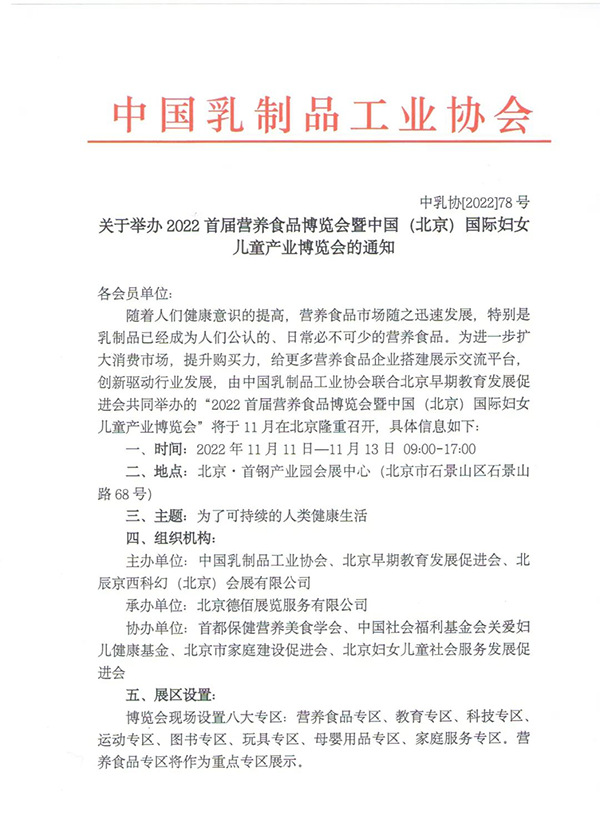 關(guān)于舉辦2022首屆營養(yǎng)食品博覽會(huì)暨中國(北京)國際婦女兒童產(chǎn)業(yè)博覽會(huì)的通知
