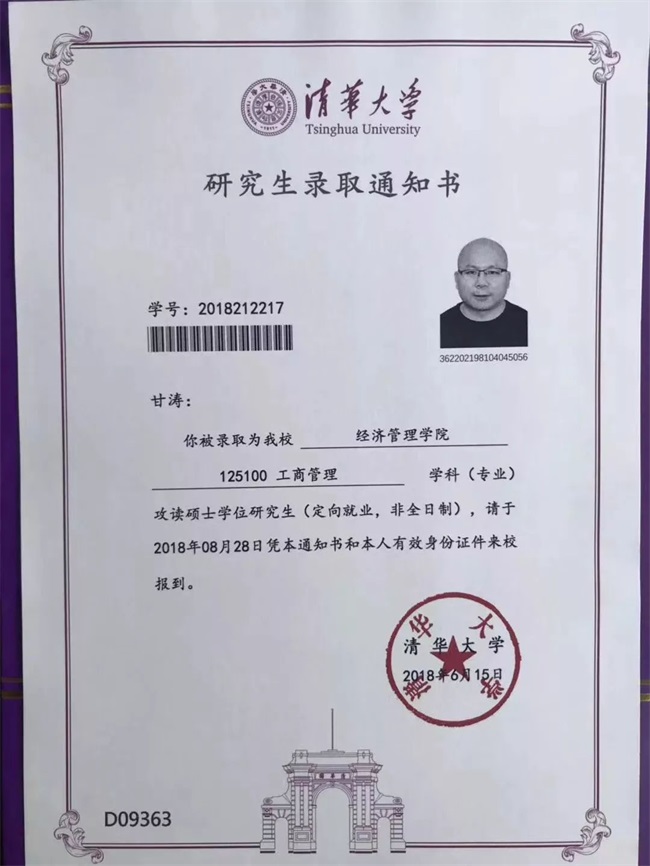 甘董是經過面試、筆試、參加全國研究生統考等層層嚴格選拔,順利考取清華大學,這將為我們集團的未來發展帶來國內和國際先進的管理思想與理念,對于集團、合作伙伴及團隊家人們,甚至對于整個乳業來說,都是重大利好,都是特大幸事!