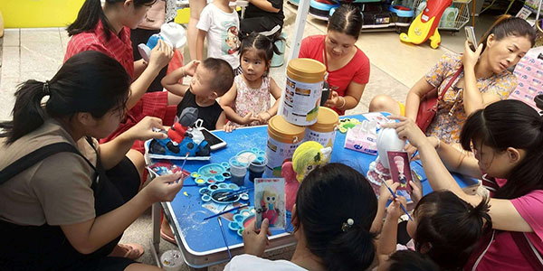 活動在我們廣西多愛母嬰用品專賣連鎖店前的空地廣場舉行,以家庭為單位,讓孩子在父母幫助下創作自己喜歡的陶藝小品。在手與手相交中,讓父母和孩子的心更加貼近。同時培養孩子的動手能力,領略到勞動的樂趣。