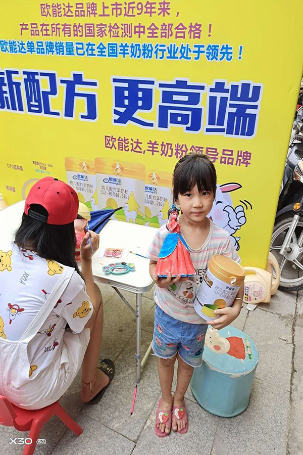 每個家庭最后拿著自己涂好的陶藝作品和我們歐能達羊奶在攝影師的相機下留下了美好的瞬間!