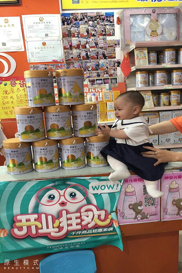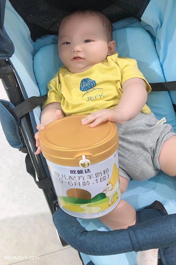 小寶寶小手抓著歐能達羊奶不放