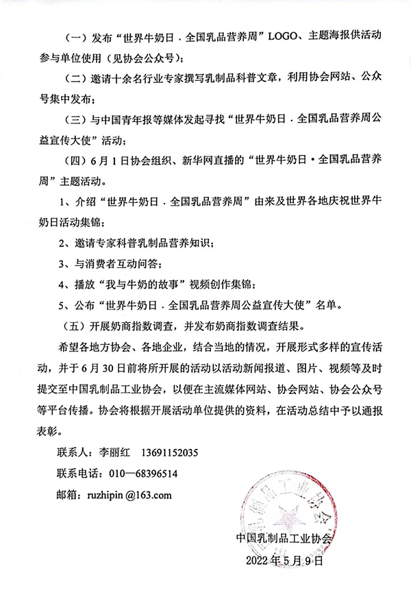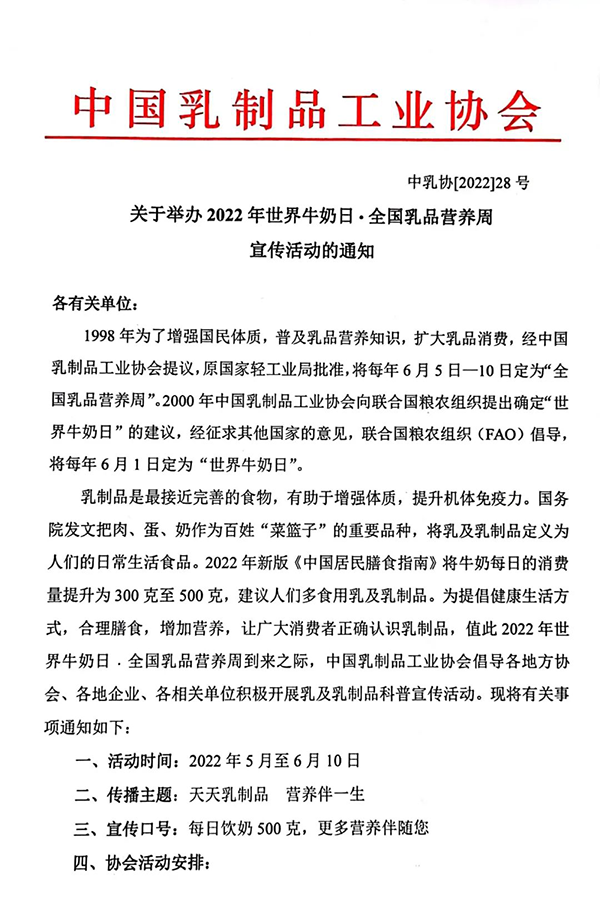 關于舉辦2022年世界牛奶日·全國乳品營養周宣傳活動的通知