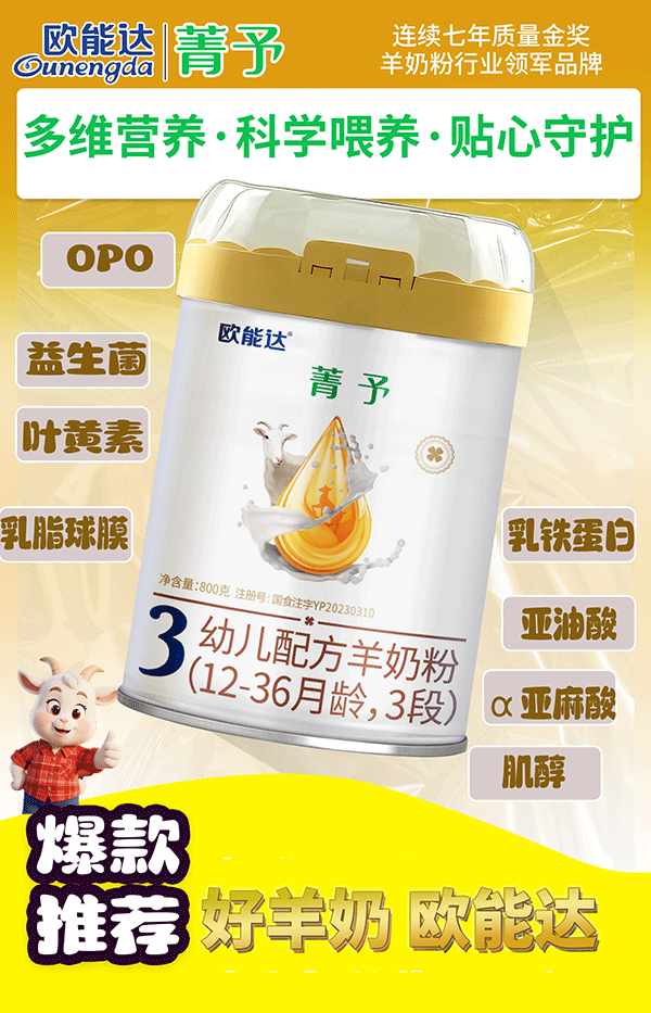 連續七年質量金獎的羊奶粉領軍品牌,寶寶喝得香,媽媽更安心!